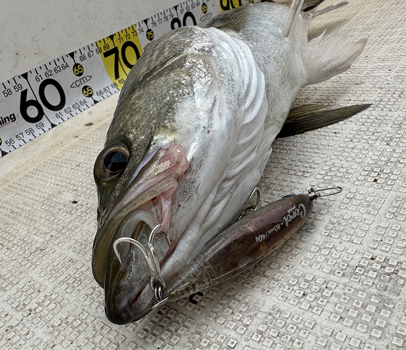 - その後も少しトレースラインを変えて引いてくると60cm前後のGOODな個体を追加!1軍ルアー決定ですw